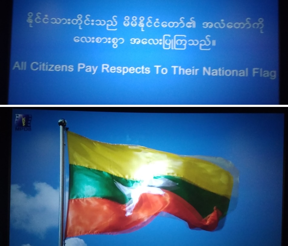 ¡Menudas butacas! Ya me gustaría a mí tener ese cine en Pamplona. Parecido a lo que me había pasado en Tailandia, pusieron el himno y todos tuvimos que «honrarlo y respetarlo»…