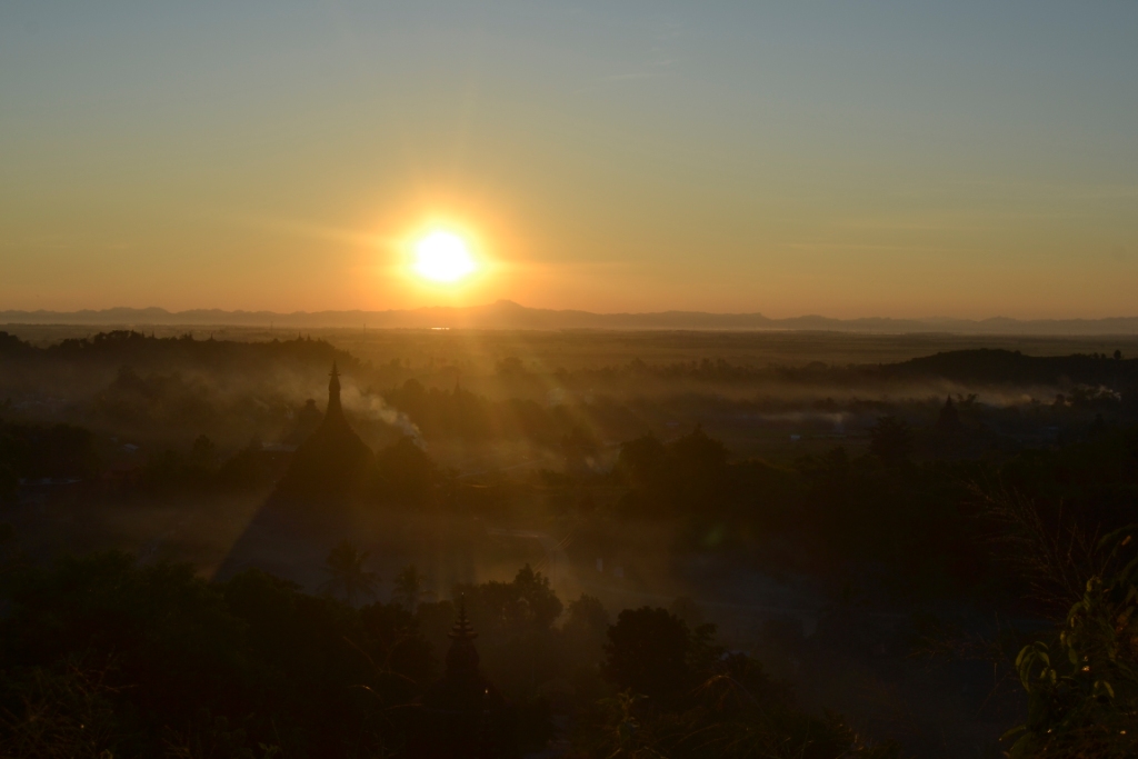 Parece ser que el mejor sitio para ver el amanecer es la Shwe Taung Pagoda que, curiosamente, está muy cerca del Prince Hotel, donde me alojé las cuatro noches que me quedé en Mrauk U. Desgraciadamente, no pude ir ningún día porque Myint me comentó que justo estaba instalado un batallón del Ejército de Birmania ahí para controlar el lugar…