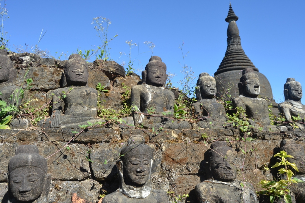 Aunque las esculturas de Buda están muy bien, casi lo mejor de Pisi Taung son las formidables vistas que ofrece del que acabaría siendo mi templo favorito: Koe Thaung Paya.
