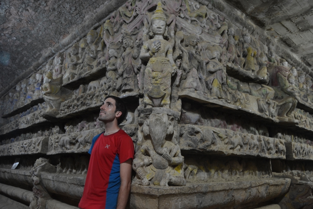 Hay que resaltar el nivel de detalle de los grabados en las paredes de esta zona: espectacular. Nuestro guía Myint debió quedar alucinado de cómo estábamos viviendo este templo, jajaja.