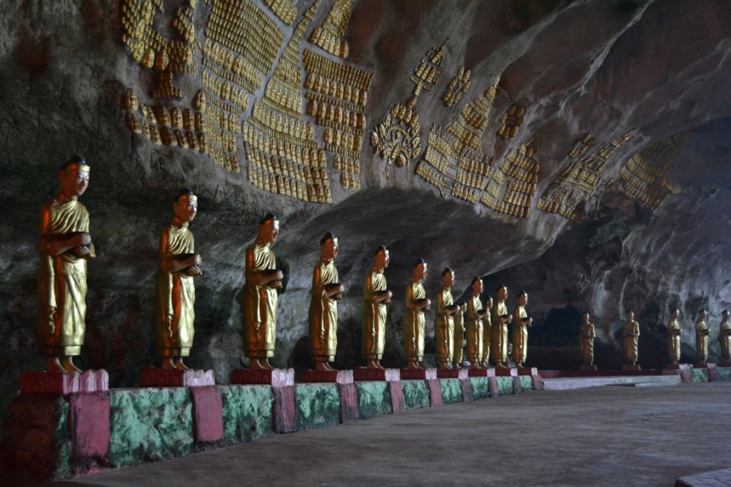 La Cueva Sadan (1000 Kyats) debió ser muy bonita antes de que el fanatismo religioso decidiese poner un montón de budas en su interior y bloques de cemento por todas partes.