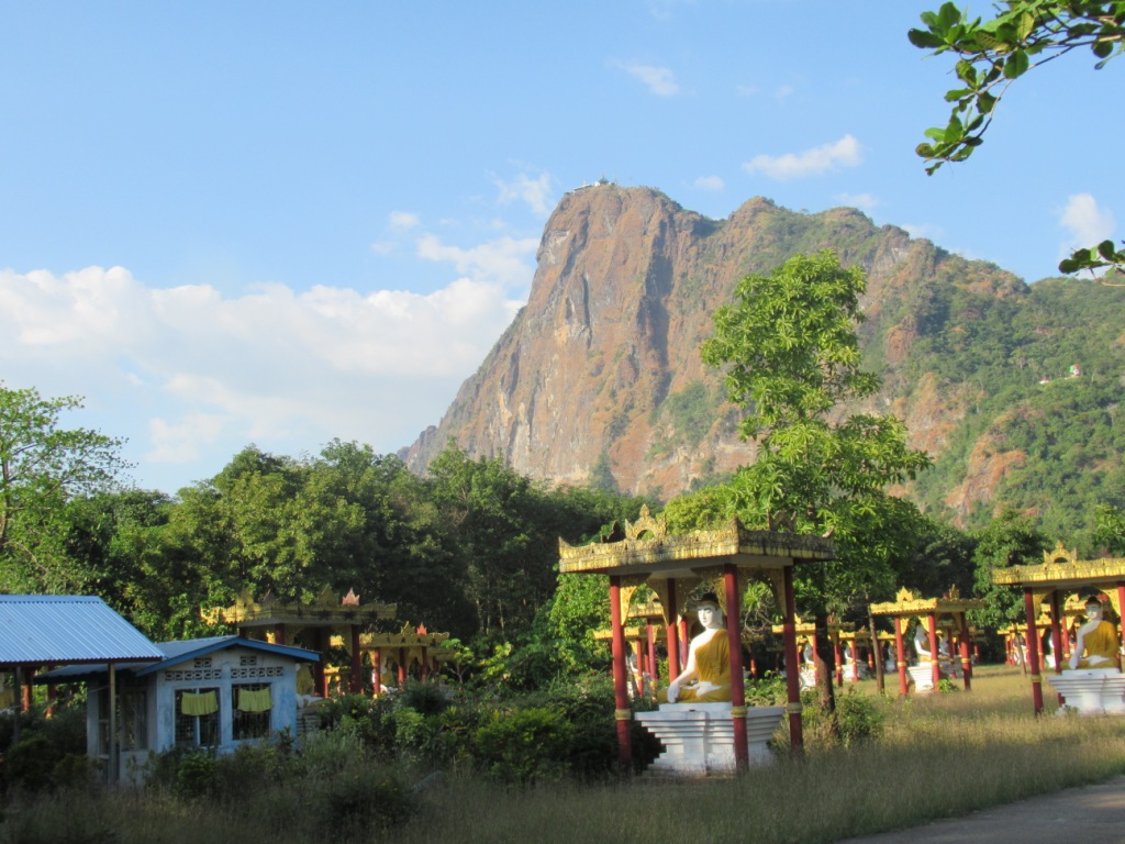 No digo que sea la cosa más impactante que he visto en Myanmar ni mucho menos, pero es realmente curioso (tanto la roca como las vistas del valle y las montañas).