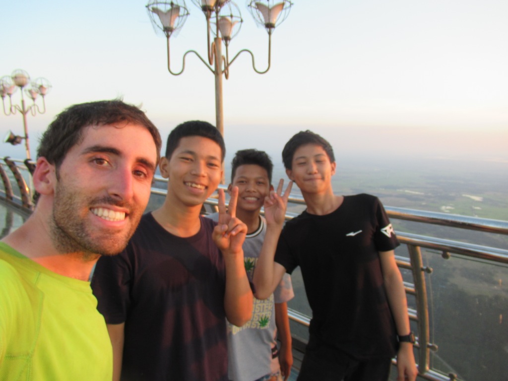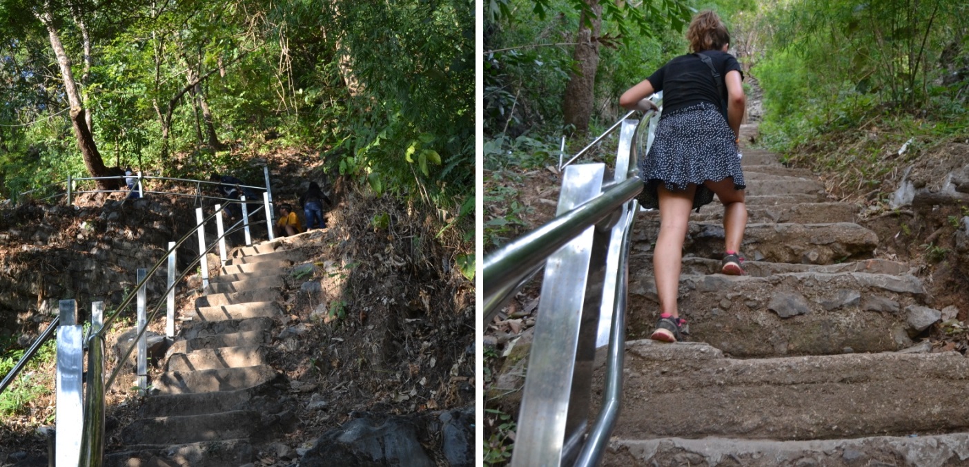 A las 5:10 aproximadamente estábamos en la base de las escaleras y comenzamos a subir. Esta vez fueron “solamente” 1400 escalones y algo más cómodos que los de Zwekabin, así que fuimos con algo más de calma.