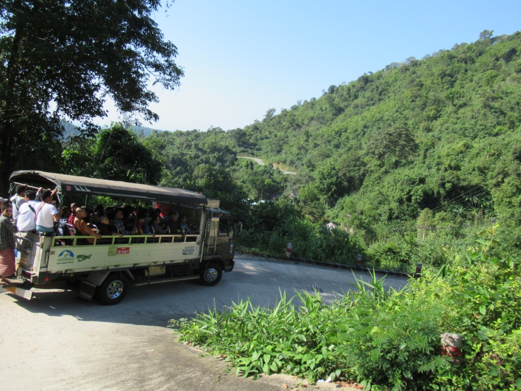 Tras pagar los 2000 Kyats del billete, me pusieron en primera fila en uno de los camiones que ya estaban casi llenos y, rápidamente, puso rumbo a lo alto de la montaña donde está la roca.