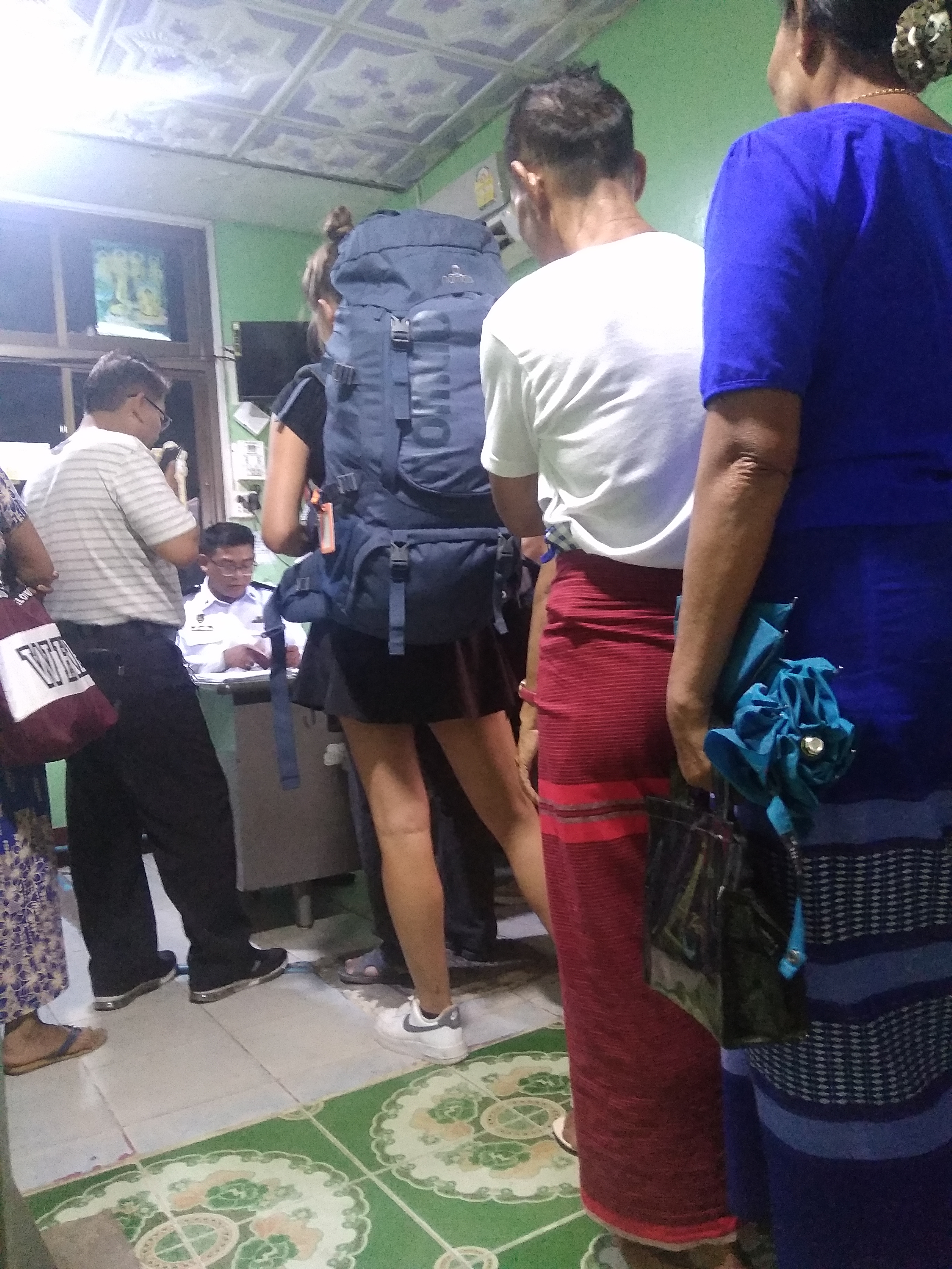 Nos recogió a las 7 de la mañana y tardamos algo más de 4 horas en llegar a Mywaddy. El taxi nos dejó justo en la frontera fuimos directos a la oficina de control de pasaporte de Myanmar.