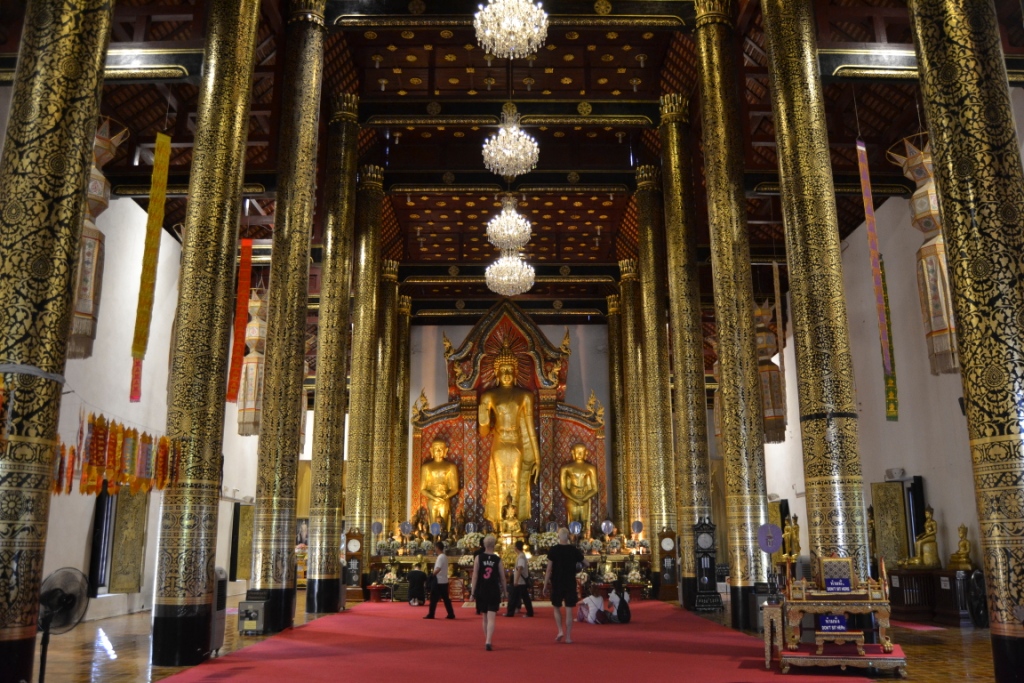 Entrando a pie por la muralla este de Chiang Mai, se llega rápidamente al templo Wat Phra Singh (20 Baht), el más venerado de toda la ciudad.