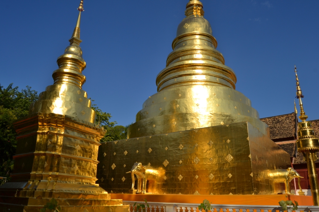 Aquí vienen un montón de peregrinos para venerar a las famosas imágenes de Buda conocidas como Phra Singh («León Buda»), guardadas en una pequeña capilla junto a la estupa, la cual se cree que llegó a Tailandia desde Sri Lanka en 1367.