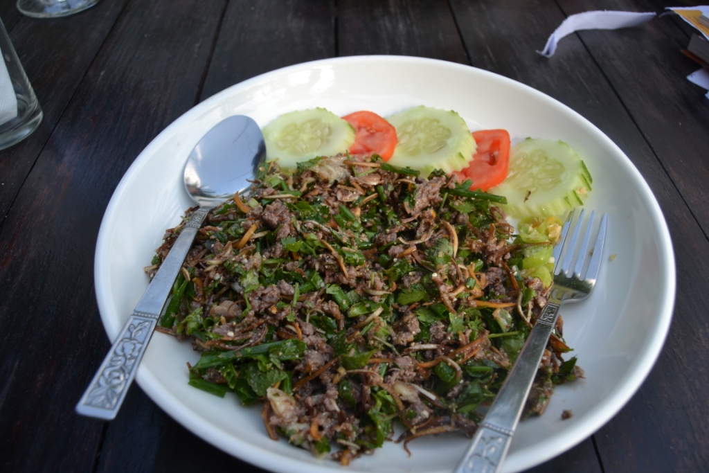 Los platos que más me gustaron fueron el pollo con anacardos, el Lao Laap (una especie de carne marinada servida templada, riquísimo) el Pad Lao o cualquier otra variedad de nooddles, las sopas (de carne, verduras, etc.) y el pescado que tomamos del Río Mekong.