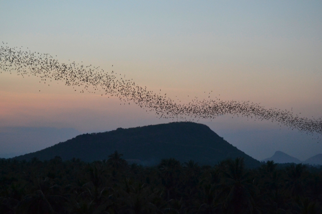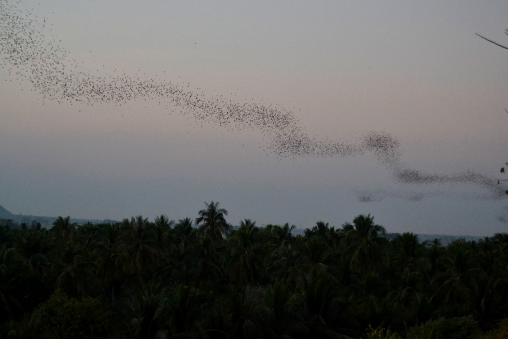 Se calcula que diariamente salen varios millones de murciélagos de esta cueva, justo al atardecer. Y el número no me extraña, porque estuvieron saliendo de manera continua y fluida durante más de 20 minutos, para después seguir moviéndose en bandadas por el aire creando formas geométricas muy curiosas.
