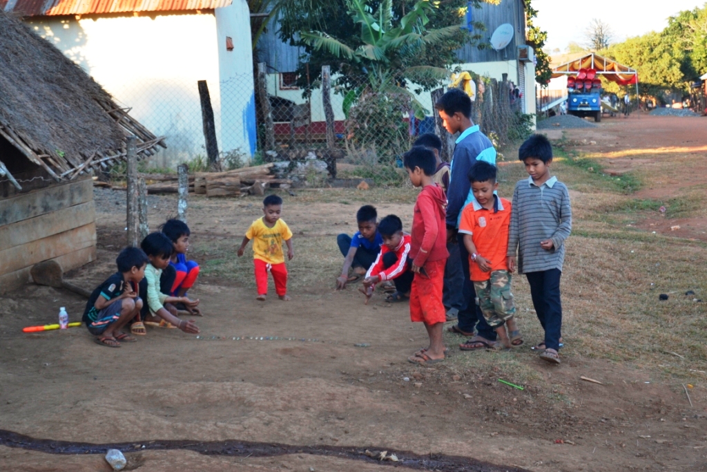 Mr. Hong nos recogió temprano en el hostal y fuimos directamente al pueblo, Putang, en su flamante 4×4. Cuando llegamos vimos que el pueblo muy tradicional ya no era… Probablemente lo fue hasta hace pocos años, pero ahora ya tiene muchas casas modernas, motos y varios 4×4.