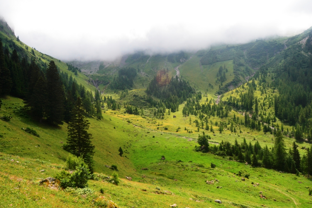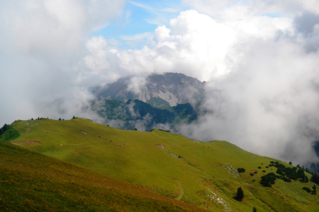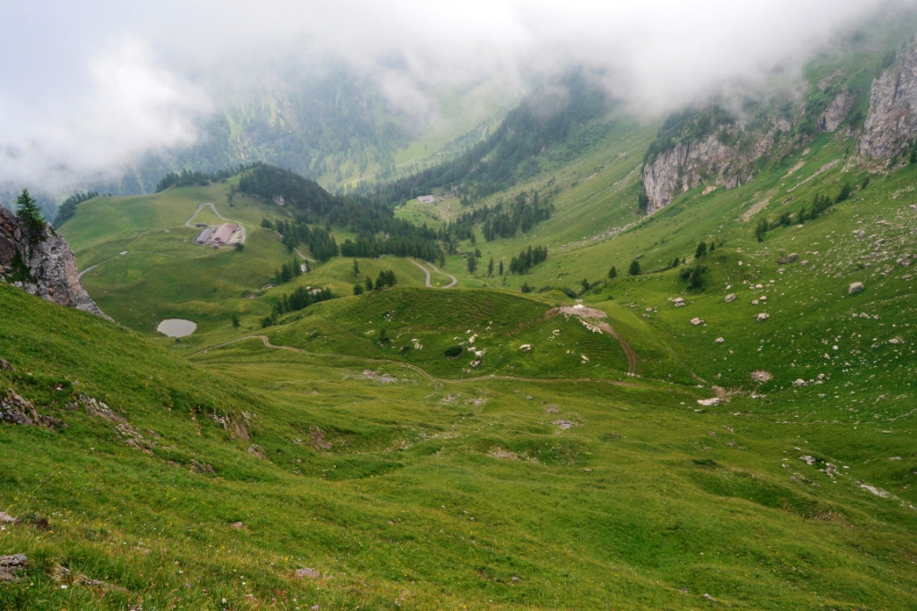 Cuando llegué al refugio de Lawena se despejó la niebla en dirección hacia el valle de Rhin, por lo que puede volver a disfrutar de vistas iluminadas por el sol. Me gustó mucho el contraste que tuve a lo largo de toda la ruta, con el sol y la niebla jugando incesantemente uno con el otro.