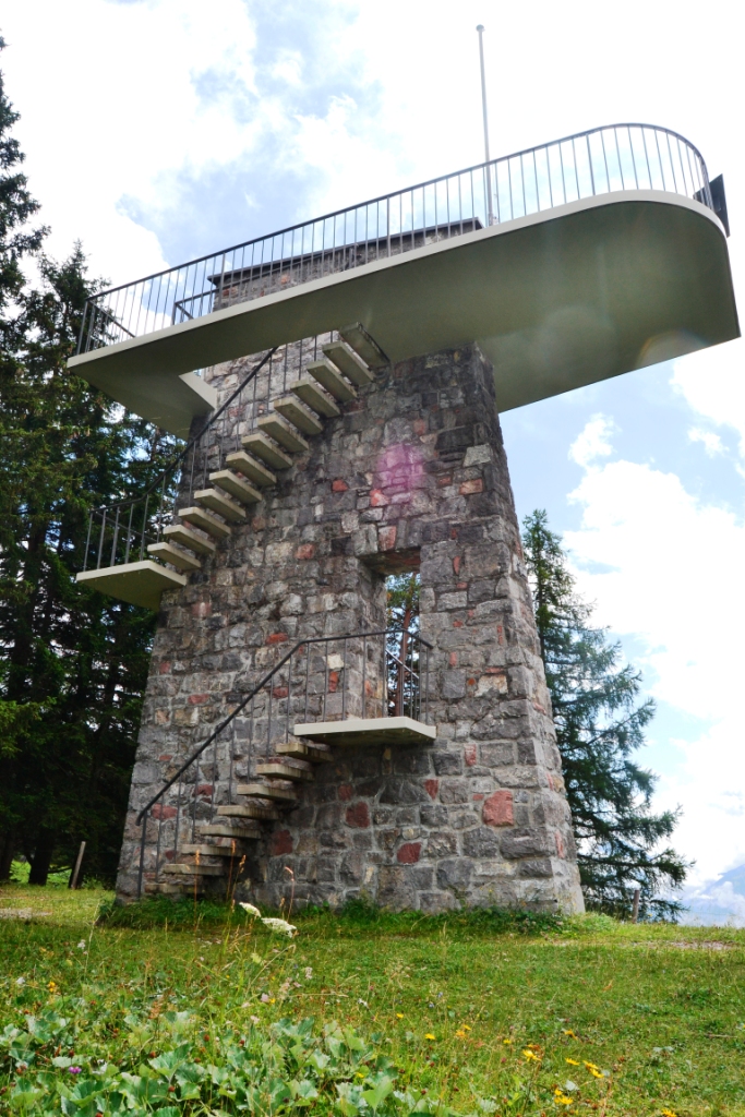 Desde el cruce de caminos, hay que coger un carretil que comienza un suave descenso hasta el Aussichtsturm Gaflei, una curiosa construcción que sirve de mirador sobre el ya conocido Valle del Rhin.