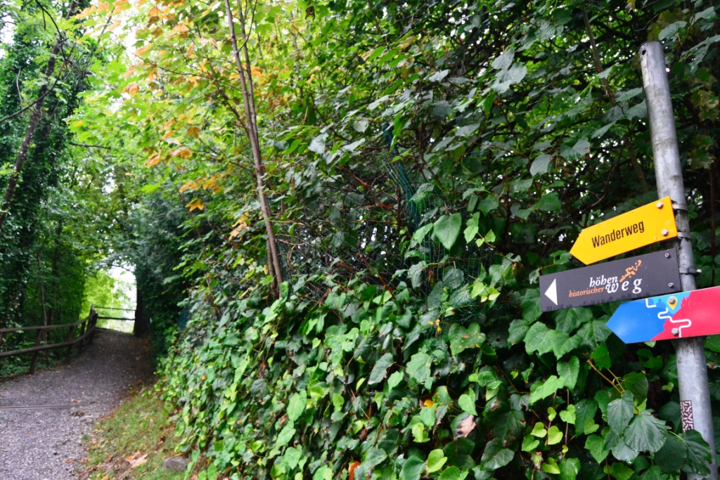 Desde la plataforma, hay que volver un poco hacia atrás para coger otro desvío que indica la dirección para bajar hacia Vaduz pasando por el Wildschloss.