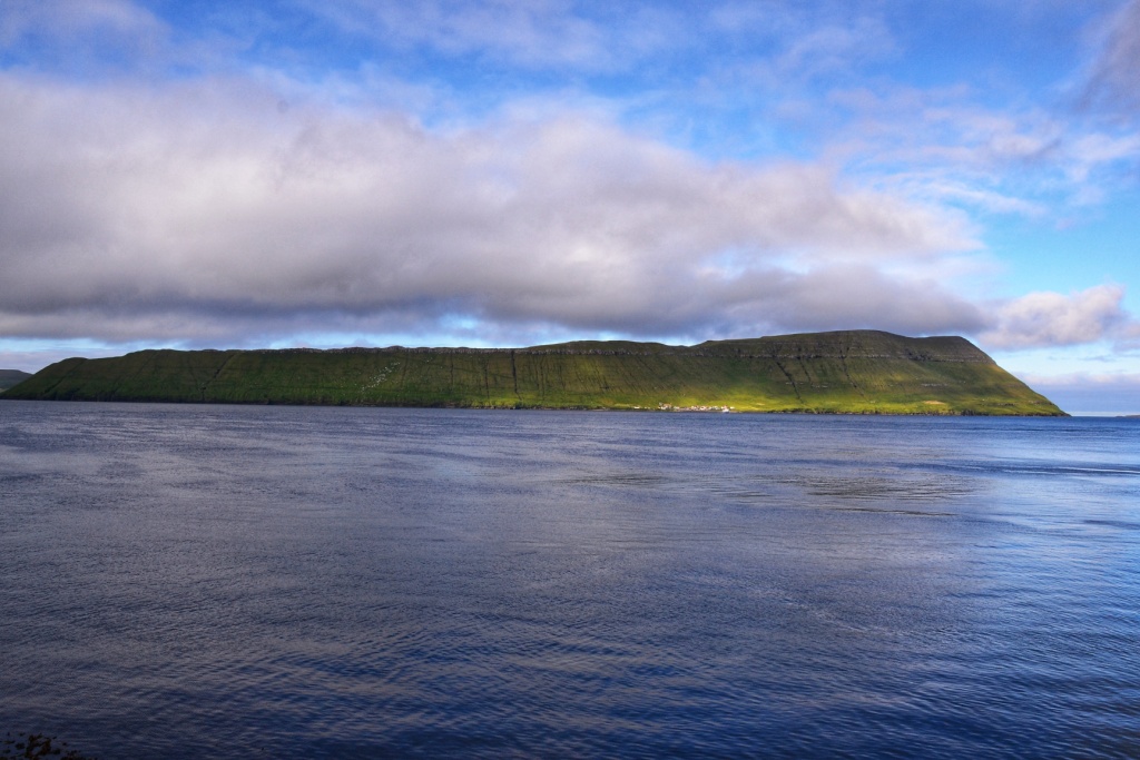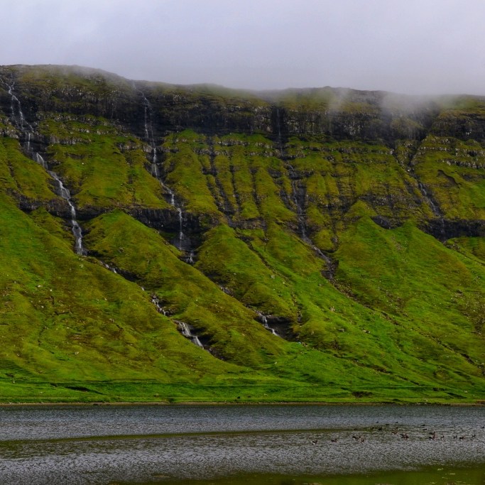 En este momento no llevábamos ni 15 horas en las islas, pero nos quedamos ya maravillados ante este espectáculo de la naturaleza: un inmenso fiordo recogido por acantilados verdes con pequeñas cascadas casi en cualquier punto al que mirásemos.