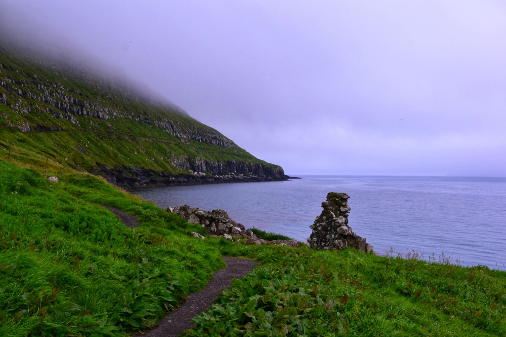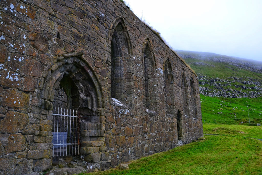 Saliendo de St. Magnus, se puede continuar un sendero que va hacia los acantilados y que pasa por las ruinas de la otra pequeña iglesia que hubo aquí en la antigüedad (Líkhús).