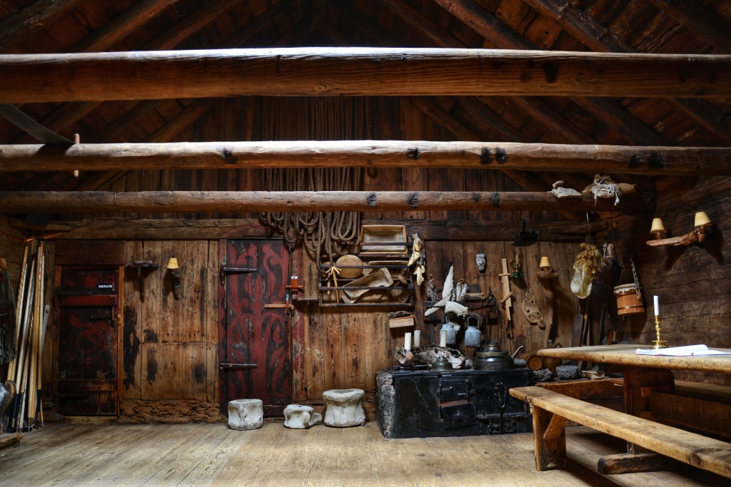 La estancia principal y más importante para la vida diaria en aquella época es una especia de gran salón-cocina en el que la se prendía fuego para que los miembros de la familia pudiesen hacer sus labores: trabajar la lana, coser, etc. También era el lugar de contar historias y realizar bailes tradicionales.
