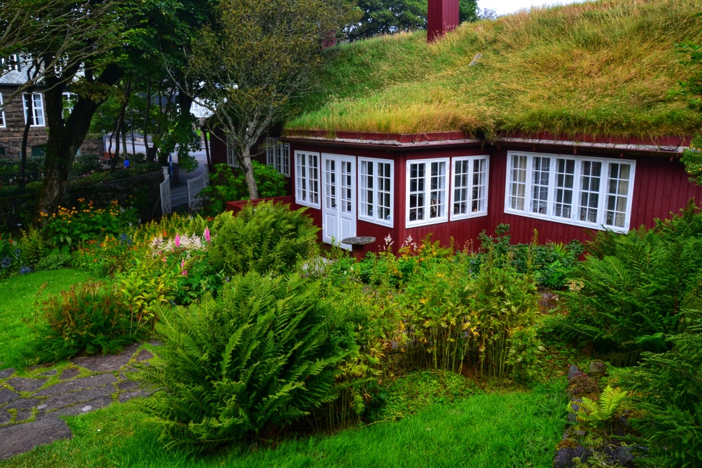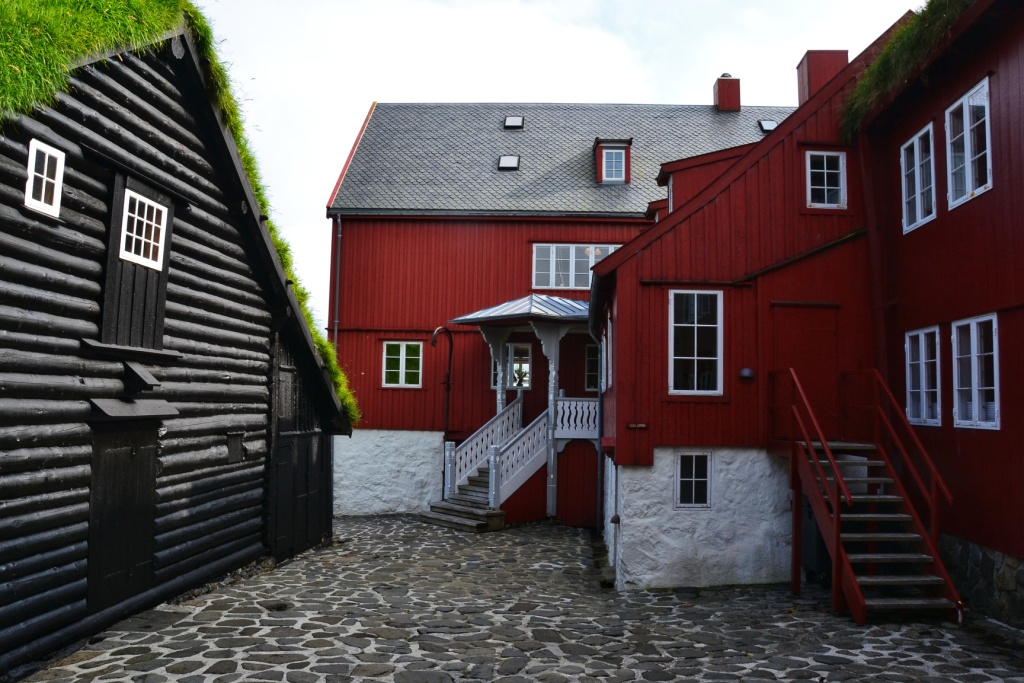 La parte más antigua de Tórshavn consiste en un pequeño barrio de casas del siglo XIV muy bien cuidadas, todas con el tradicional tejado de césped y pequeñas ventanas de madera, en las que aún vive gente de manera habitual. El barrio tuvo la suerte de librarse del incendio que desoló la península de Tinganes en el año 1673.