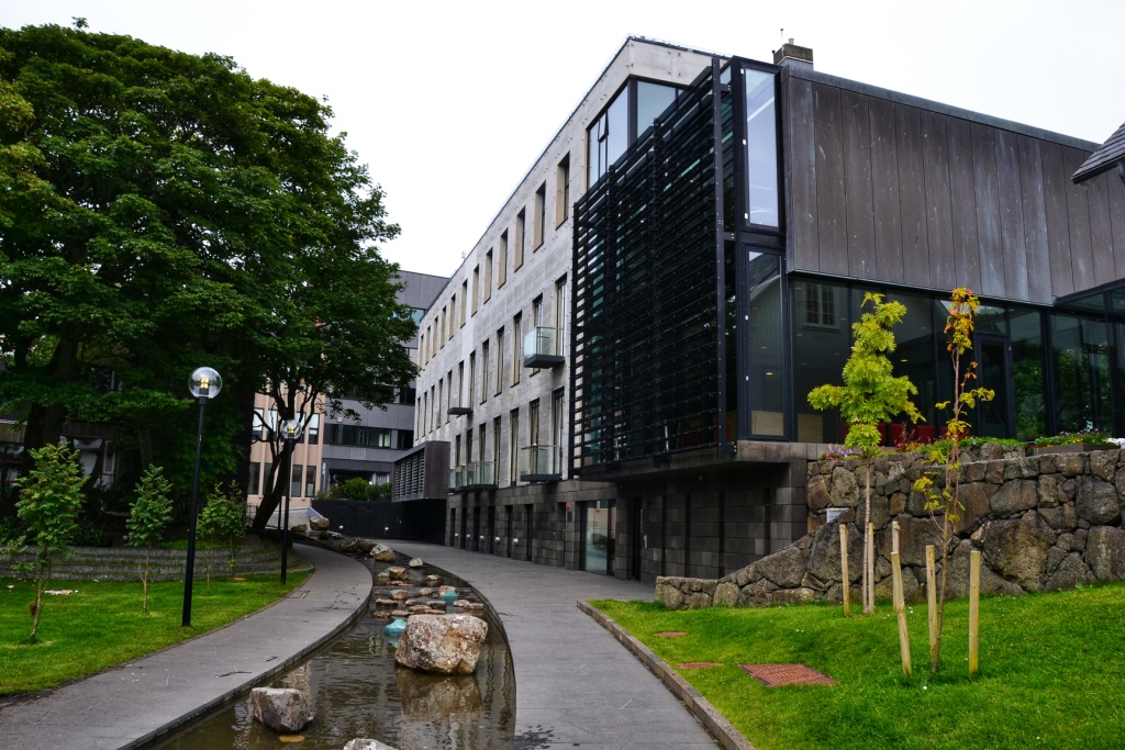 Sin duda, uno de los edificios más importantes de esta zona es el Løgting que acoge al parlamento Feroés y es, sin duda, uno de los edificios parlamentarios más pequeños del mundo. Aunque no pudimos entrar, sí que nos fue posible ver un poco el bullicio (bueno, «bullicillo») de algunas trabajadoras y trabajadores que salían y entraban para hacer el descanso y tomar un café.