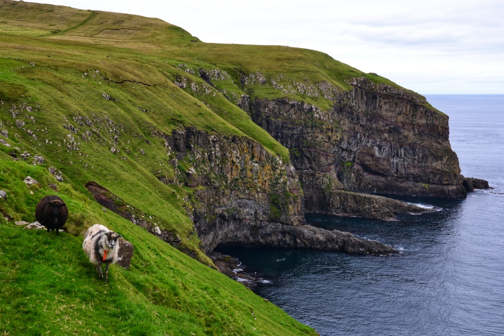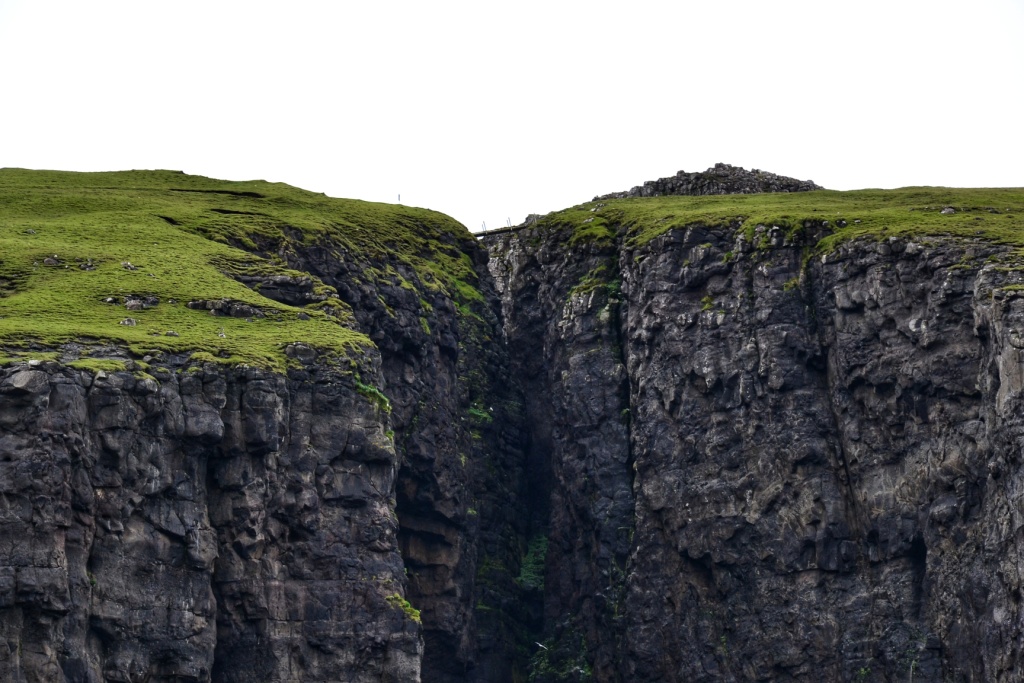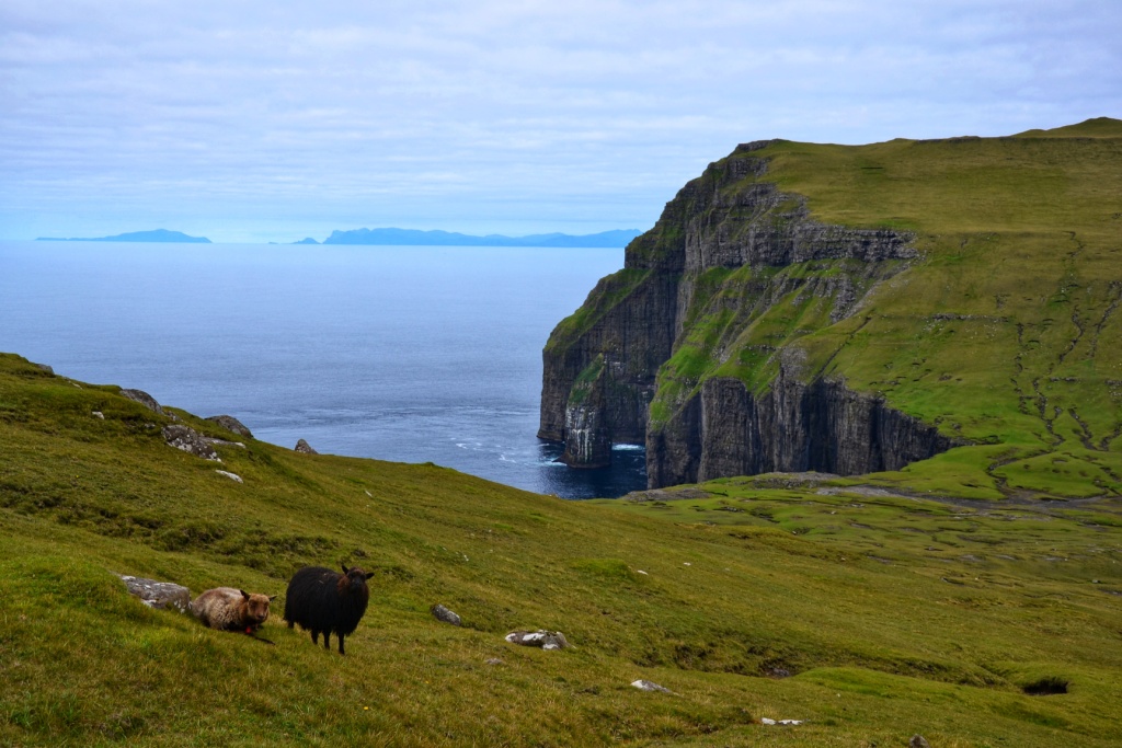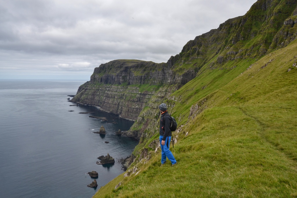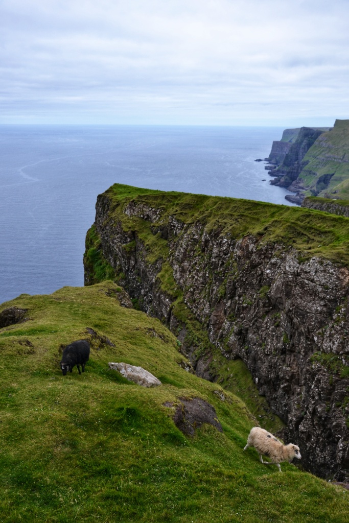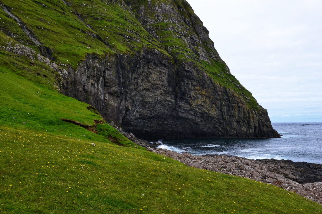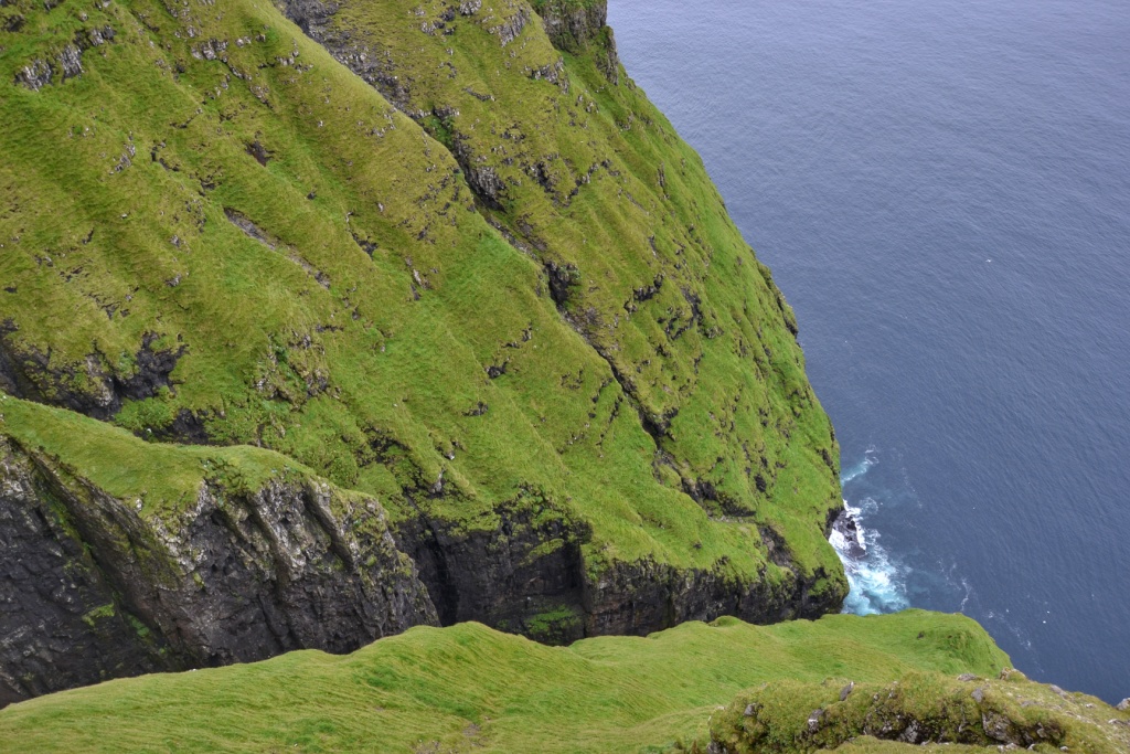 Todo el terreno que rodea la línea de los acantilados está cubierta por pendientes recubiertas de la hierba densa del verde feroés que tanto nos gusta.