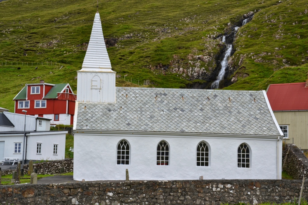 Un verdadero remanso de tranquilidad. Para llegar hay que recorrer los 9 km de la ruta de carretera 32 que sale de cerca de Øravík y que termina justo en el pueblo. El enclave es muy bonito pero lo que realmente es importante aquí es lo que encierra su iglesia de 1875, un verdadero símbolo nacional: la Merkið (la primera y verdadera bandera feroesa).