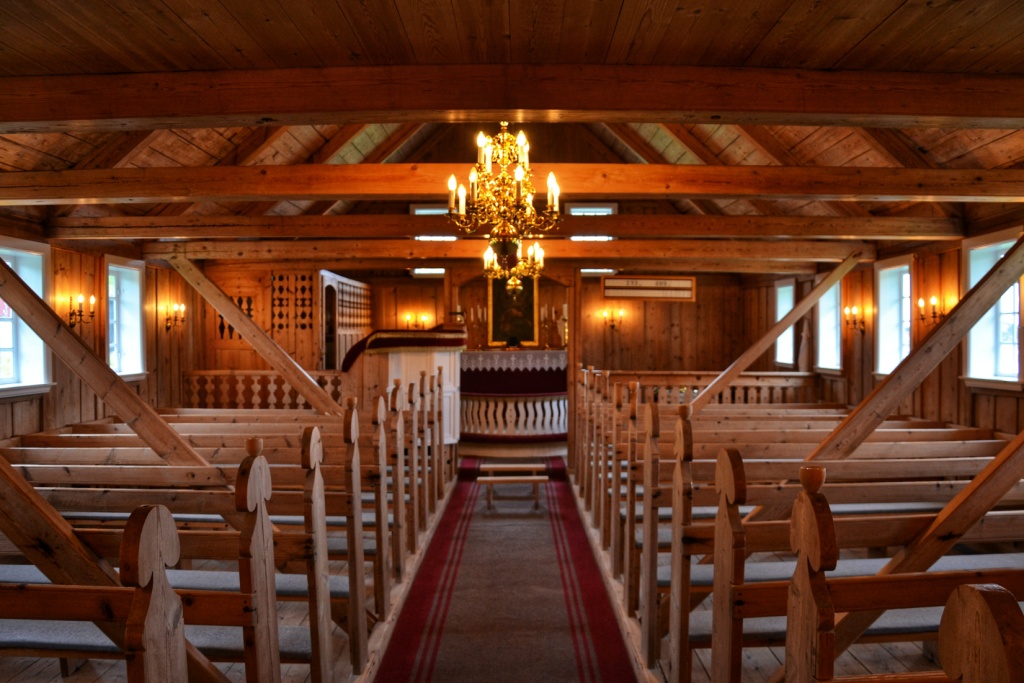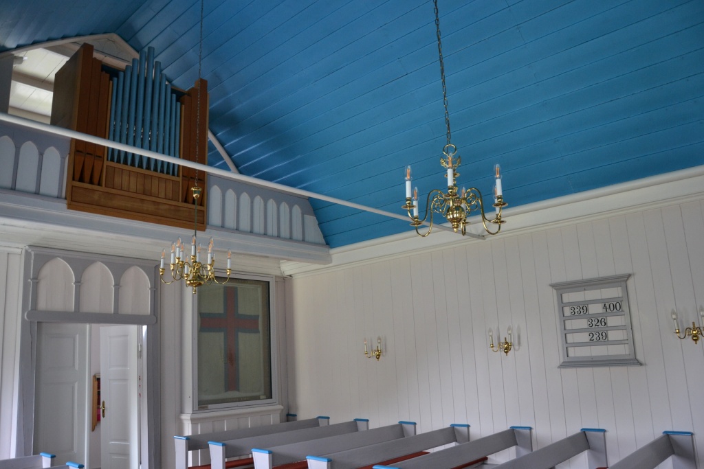 El motivo fundamental para venir hasta Porkeri era visitar su preciosa iglesia de 1847, con espectaculares tallas de madera hechas a mano. Aquí, POR FIN, después de tantas iglesias al más puro estilo feroés cerradas, pudimos entrar para ver el interior de una de estas pequeñas joyas nórdicas.