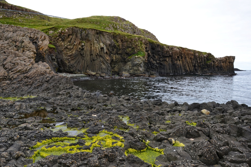 Aquí lo más importante es conducir hasta la curva en forma de U y buscar la bajada marcada bajo el nombre Kulugjógv (N 61.545182º, O 6.760526º) para poder ver una de las formaciones geológicas más interesantes de la isla: una colección de columnas de basalto (del estilo de las tan famosas de Islandia).