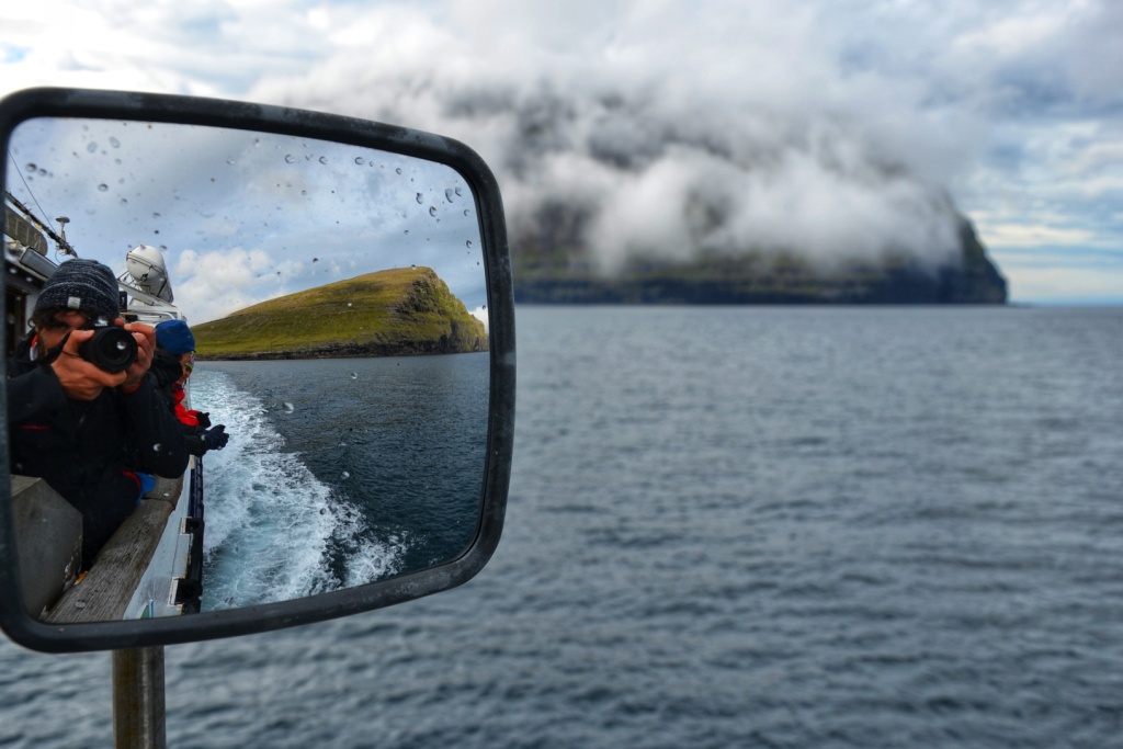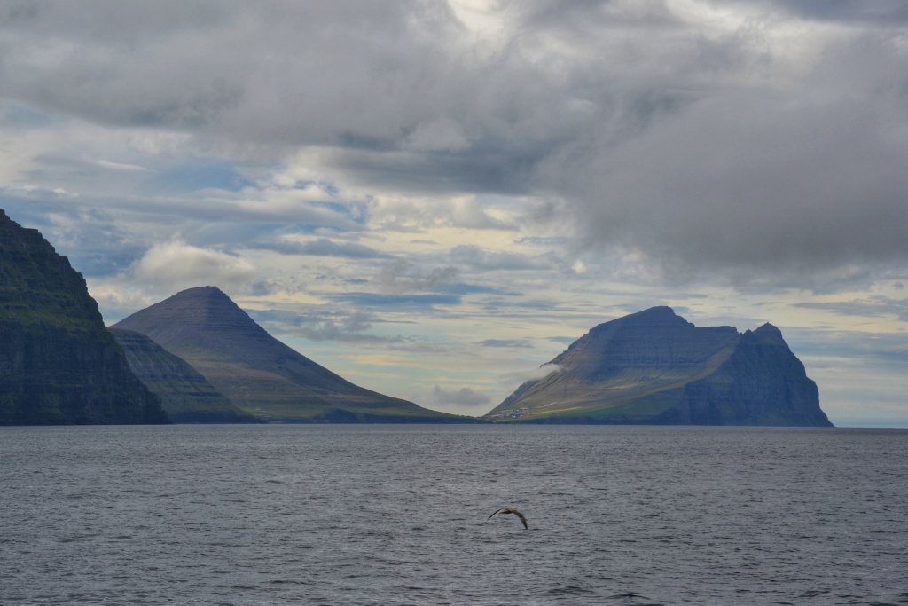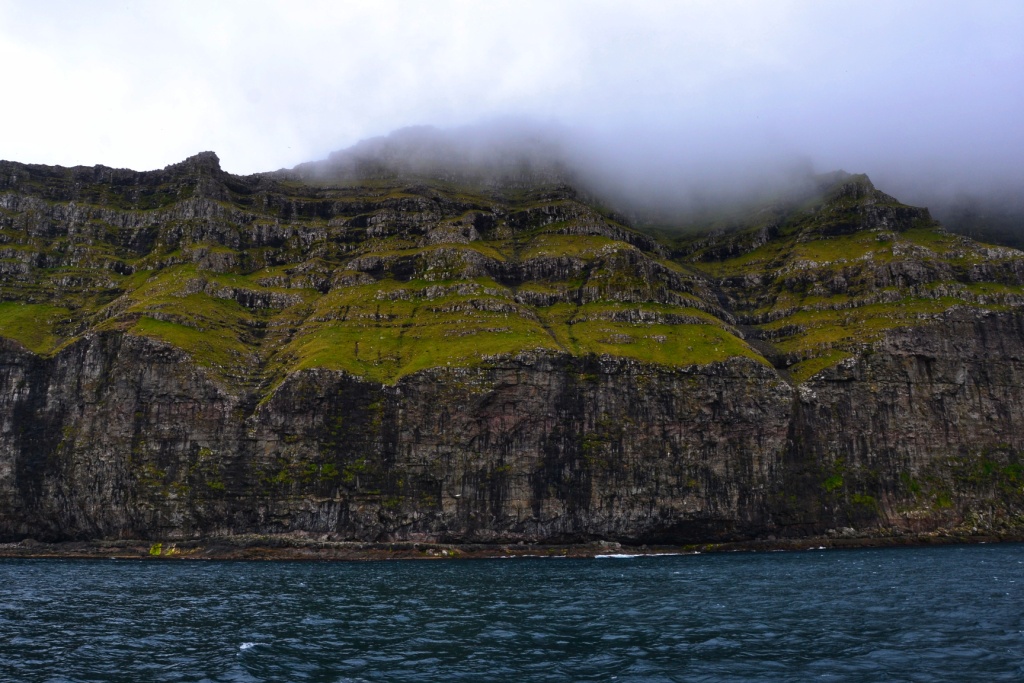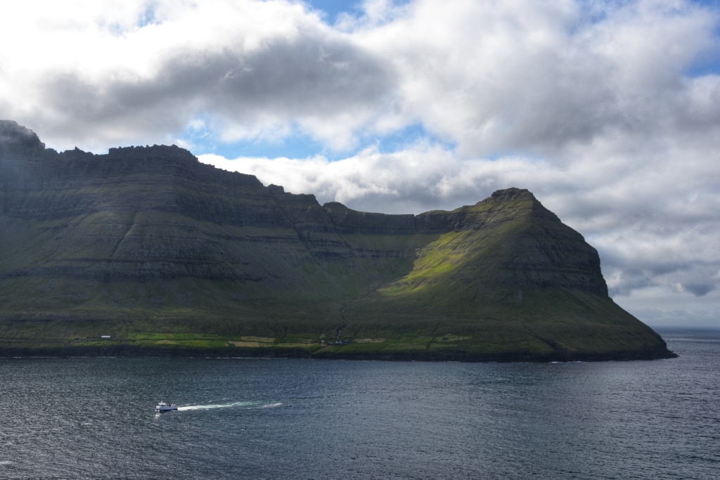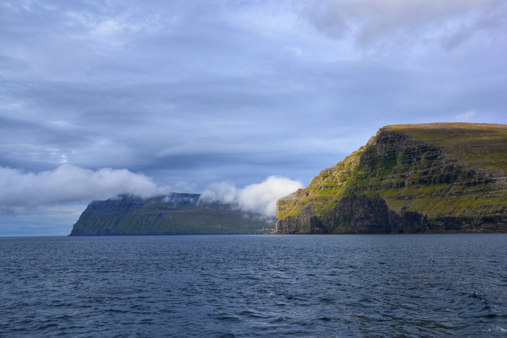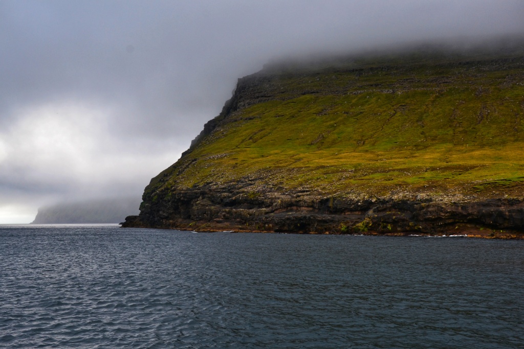 Cuando empezó el viaje de vuelta empezó a mejorar la visibilidad. Pronto pudimos ver perfectamente la parte final de la isla de Viðoy, visiblemente dominada por el monte Villingardalsfjall al que habíamos subido una semana antes.