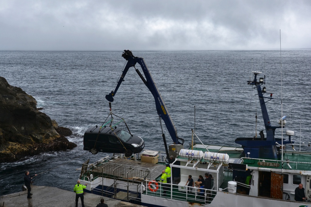 Bueno, todo un show. El momento en el que se pusieron a preparar el coche para después cargarlo encima del ferry con una grúa fue realmente auténtico. La cancelación del helicóptero ya había valido la pena.