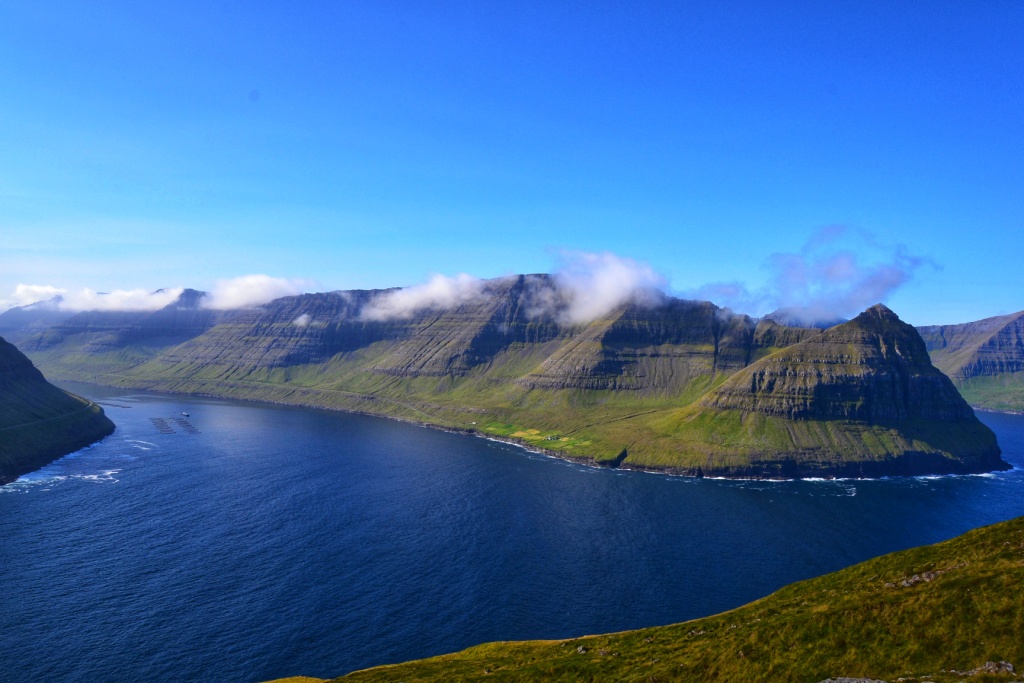 En un día claro como el que teníamos (por ahora) se puede distinguir perfectamente el pueblo de Múla en Borðoy, Trøllanes en Kalsoy e incluso el Faro Kallur en la punta norte de esta isla.