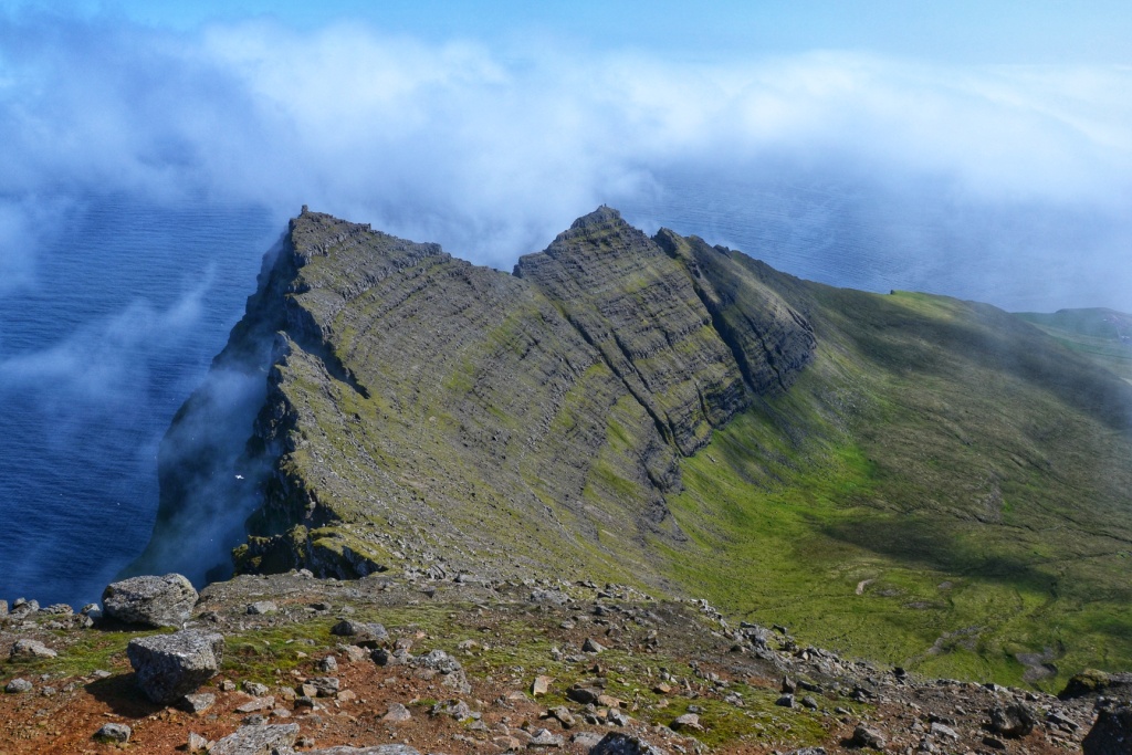 - Es un enorme trozo de basalto que llega hasta los 621 metros de altura de la montaña Klubbin y está rodeada por espectaculares acantilados verticales en gran parte de su perímetro.