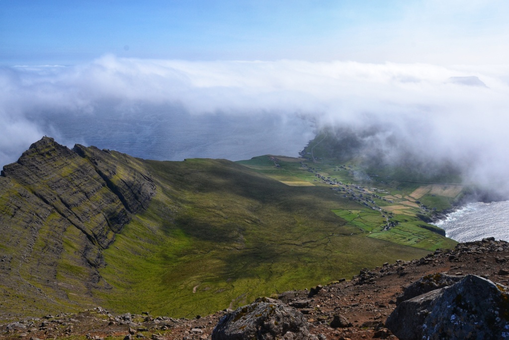 Las vistas hacia el sur de Viðoy y Borðoy eran espectaculares también, con unas nieblas en movimiento que iban engullendo y soltando trozos de las montañas.