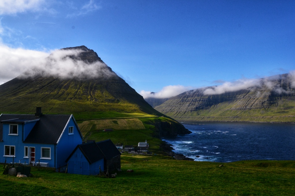 Puede que en cuanto a casas no sea el pueblo más bonito de las Feroe, pero su ubicación en un estrecho istmo de 1,5 kilómetros de ancho bajo la sombra del espectacular monte Malinsfjall y con vistas a Múla (Borðoy) y a la majestuosa montaña Villingardalsfjall, hacen de Viðareiði un pueblo realmente mágico.